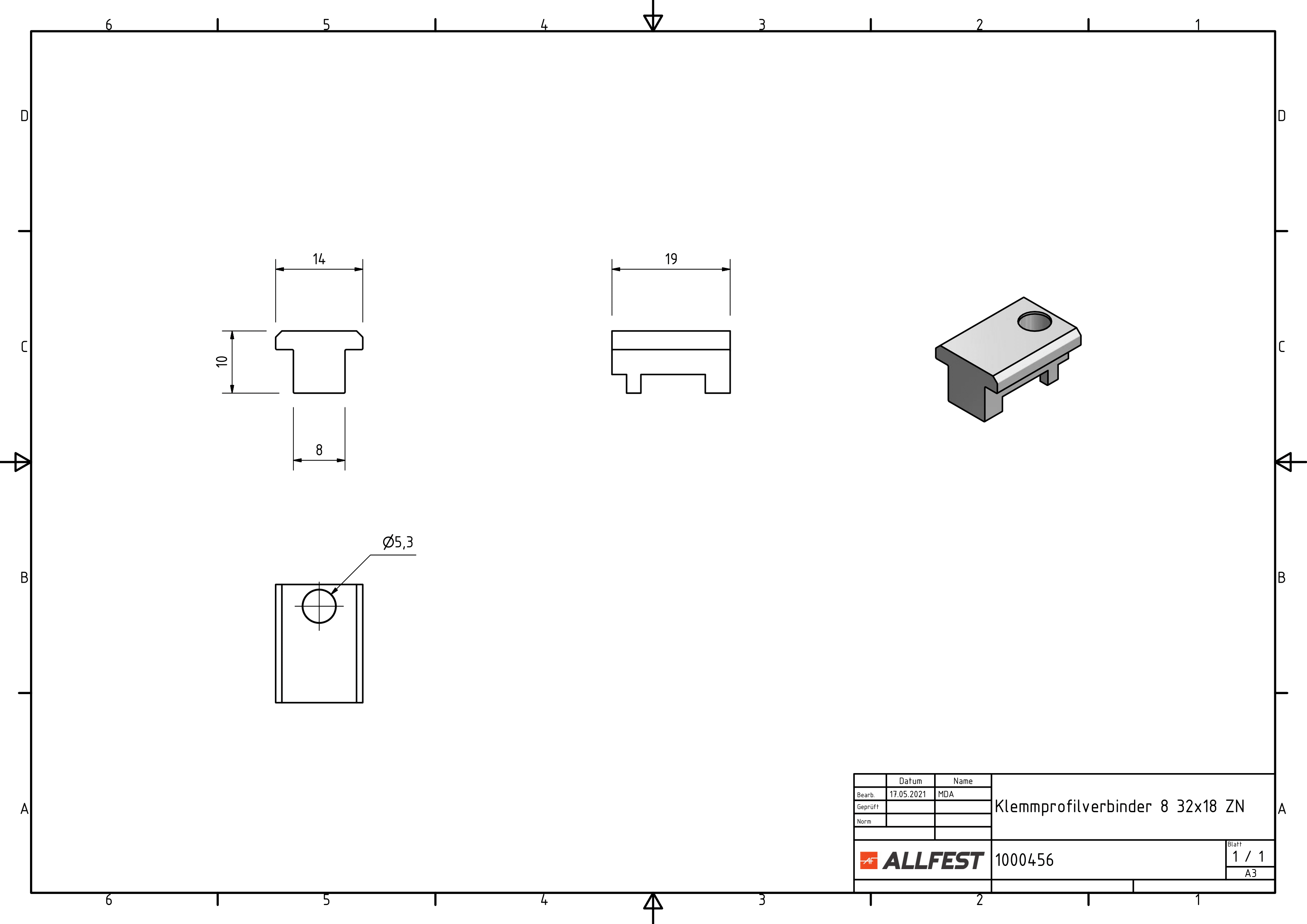 Clamping profile connector 8 32x18 ZN - allfest.de