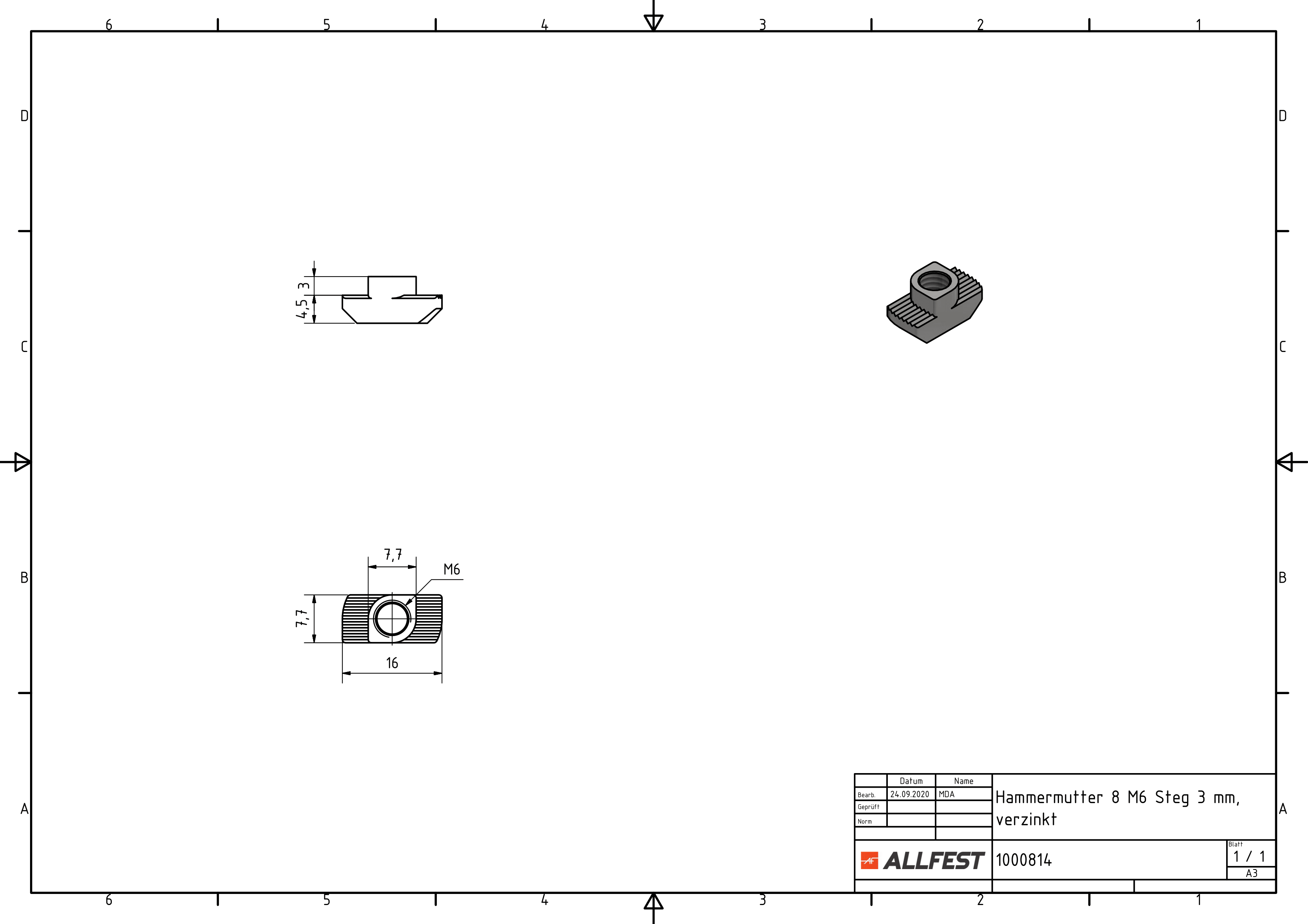 Ecrou à tête rectangulaire 8 M6 - 3 mm - allfest.de