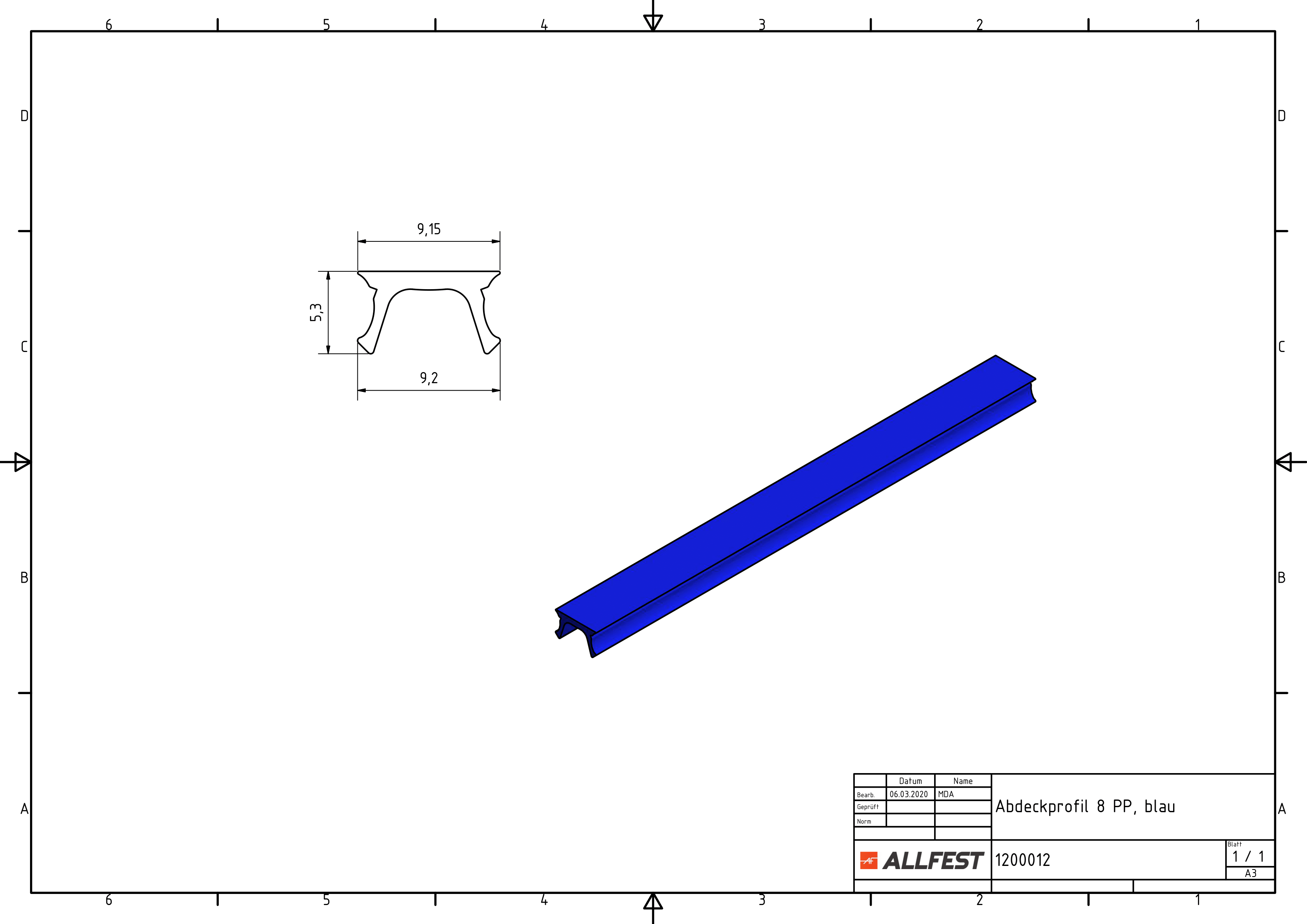 Profilé cache 8, bleu semblable RAL 5005 - allfest.de