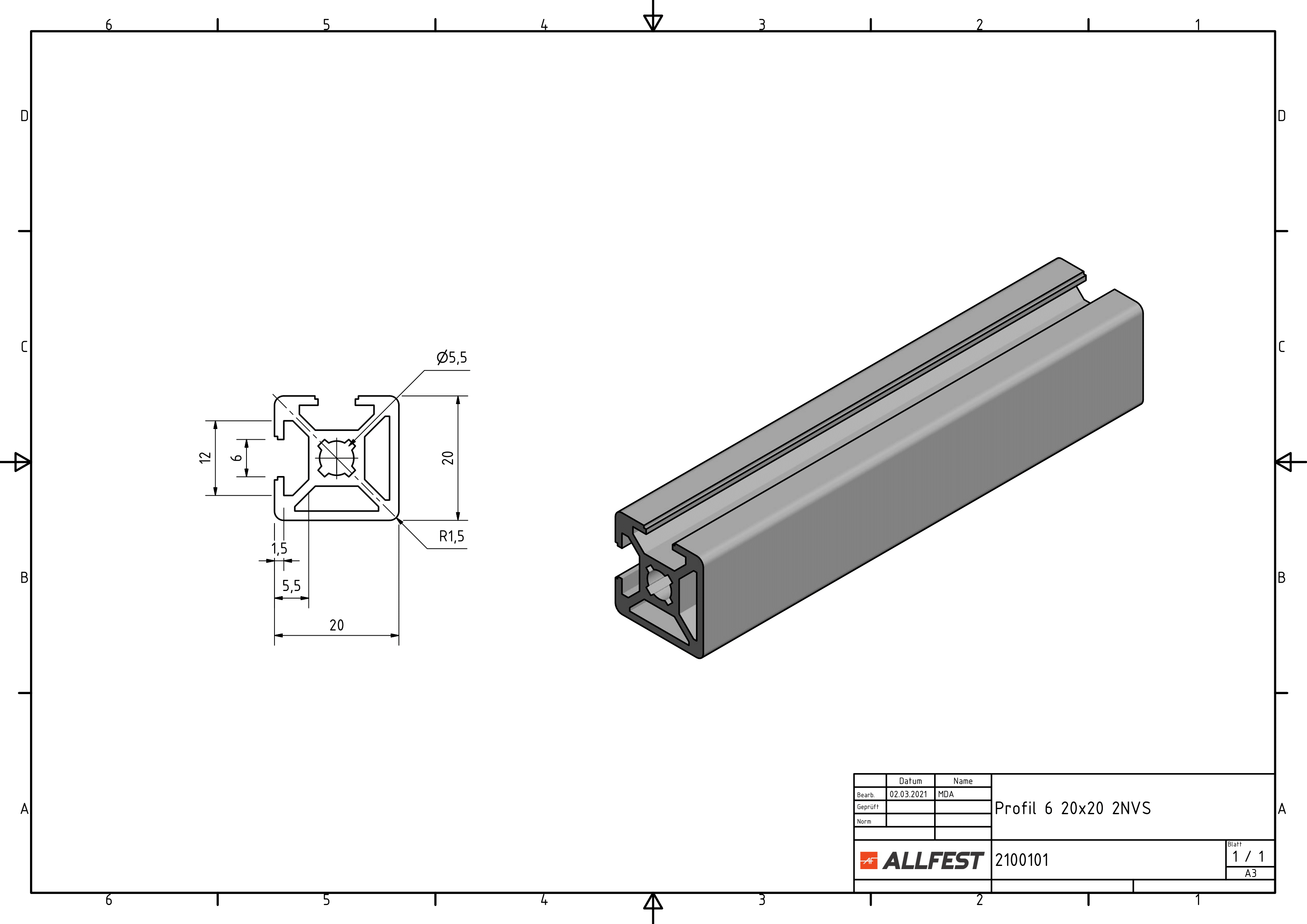 Profilés d'étayage 6 20x20 léger, 2NVS - allfest.de