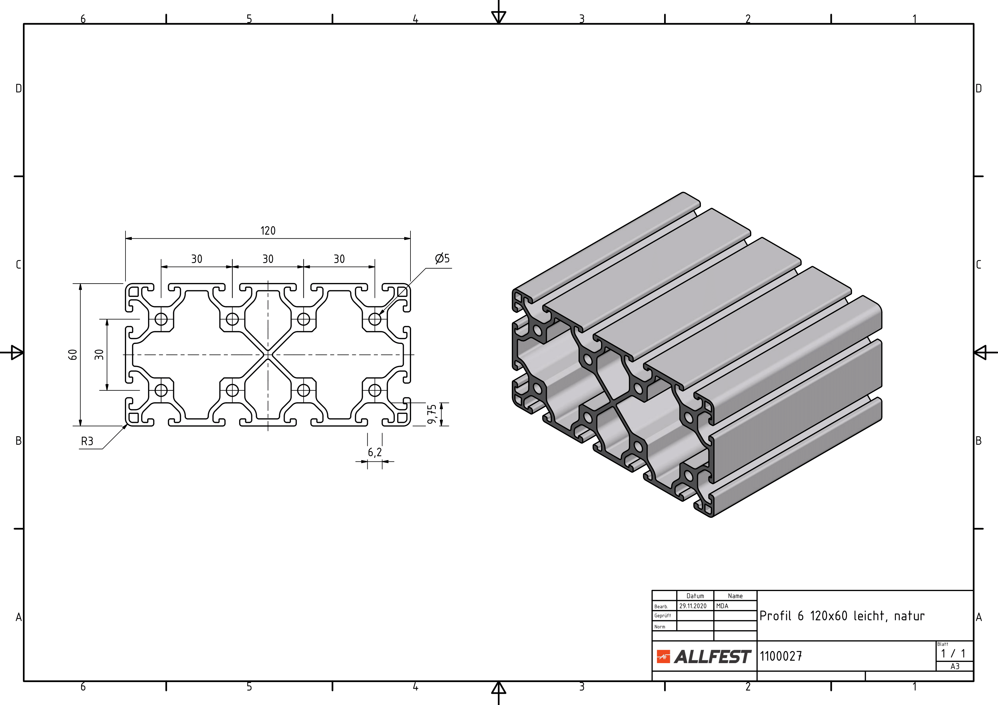 Profilato 6 120x60 leggero, naturale - allfest.de