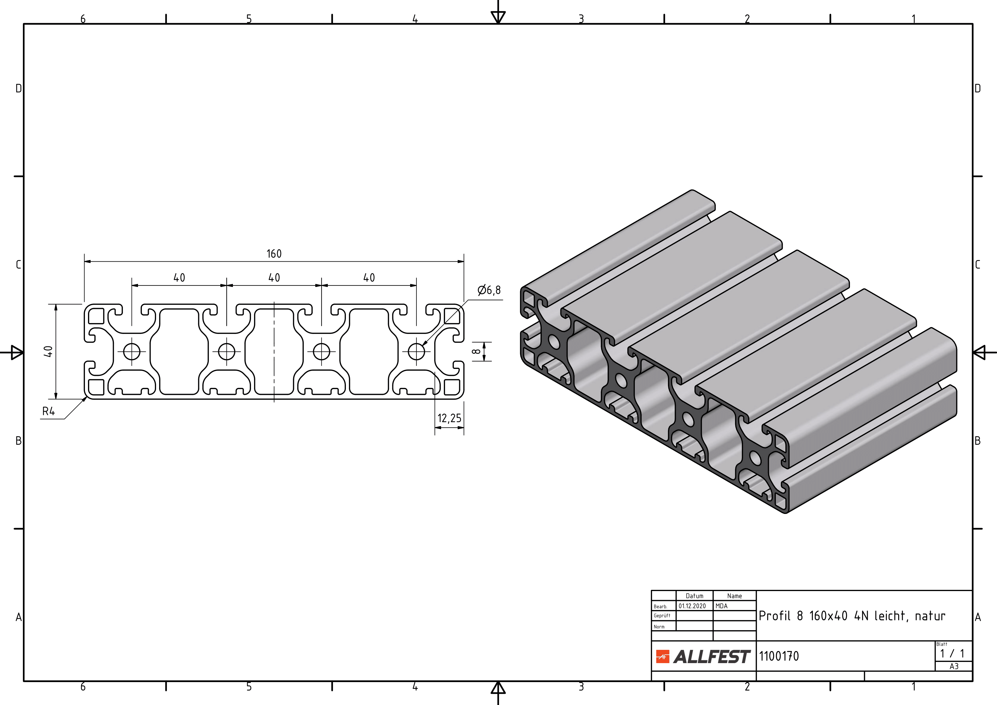 Profilato 8 160x40 4N leggero, naturale - allfest.de