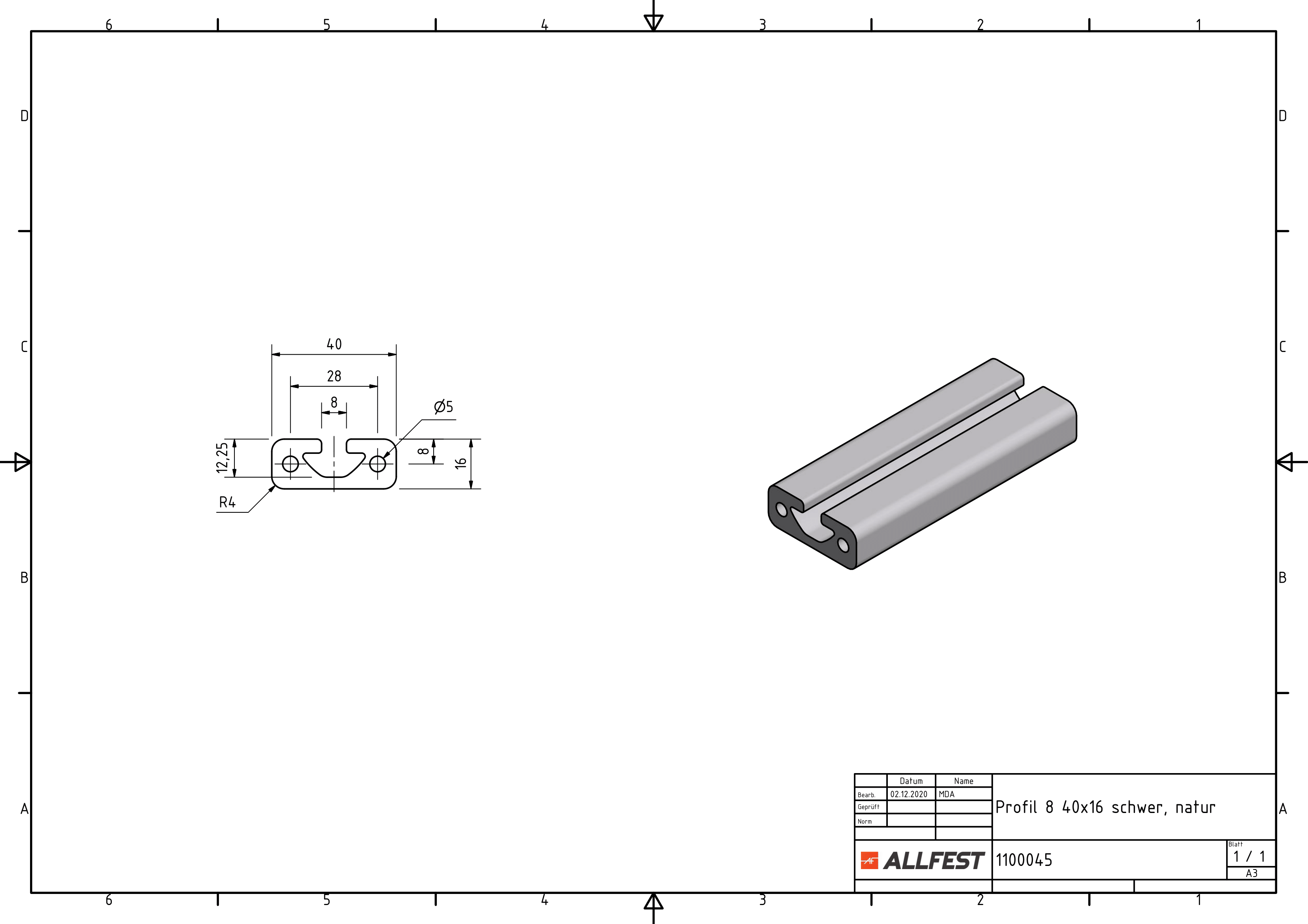 Profilato 8 40x16 pesante, naturale - allfest.de