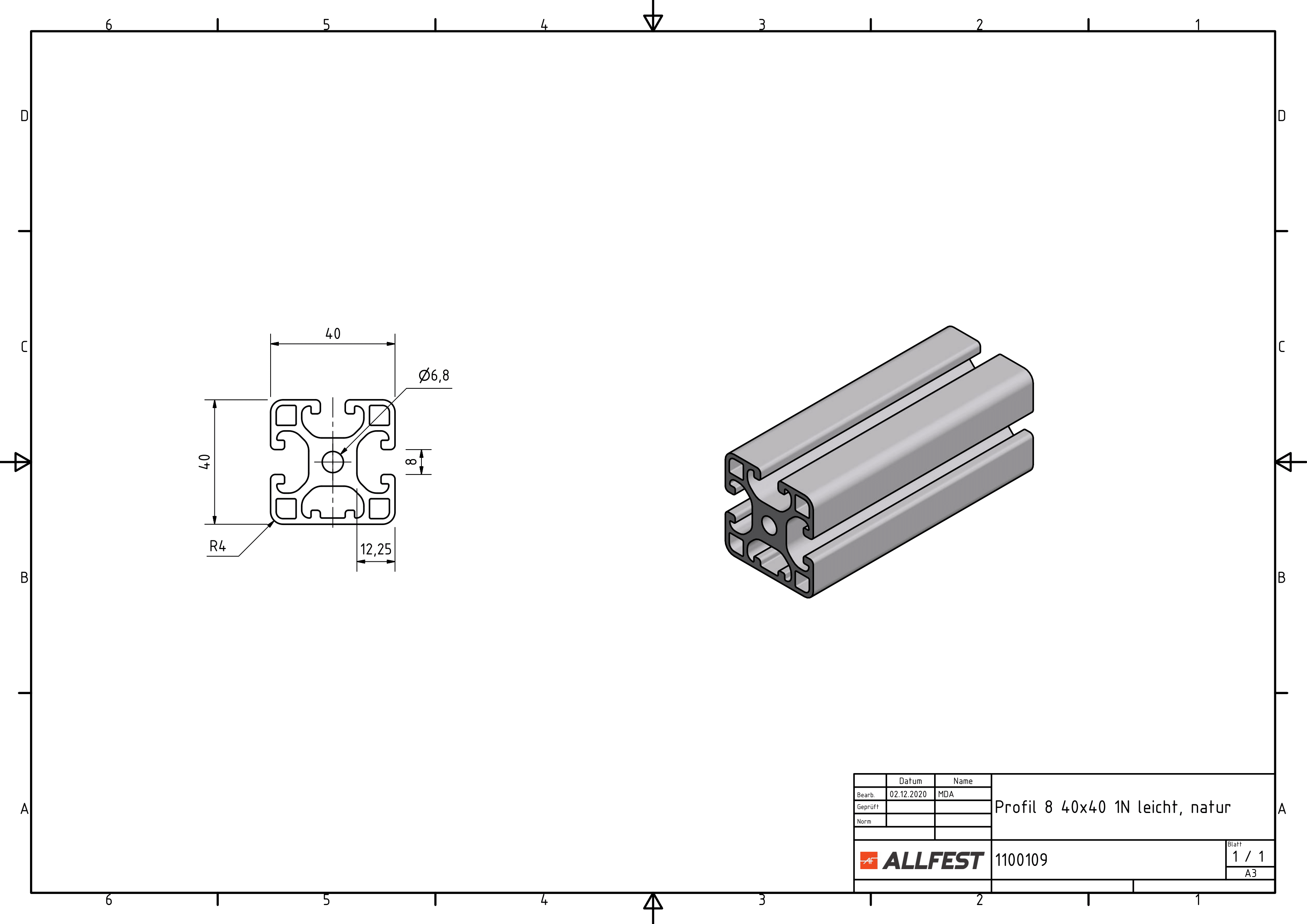 Profilato 8 40x40 1N leggero, naturale - allfest.de
