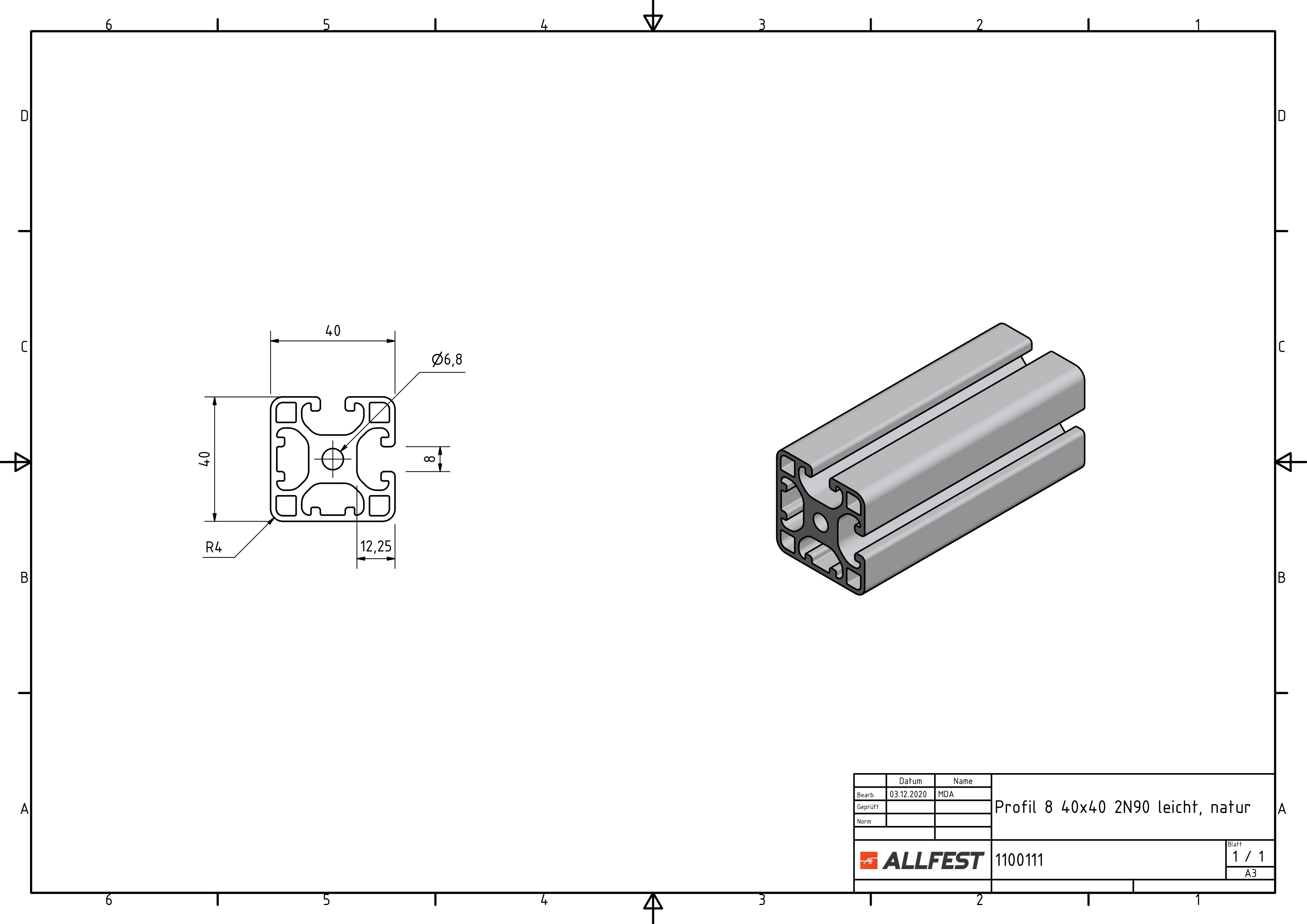 Profilato 8 40x40 2N90 leggero, naturale - allfest.de