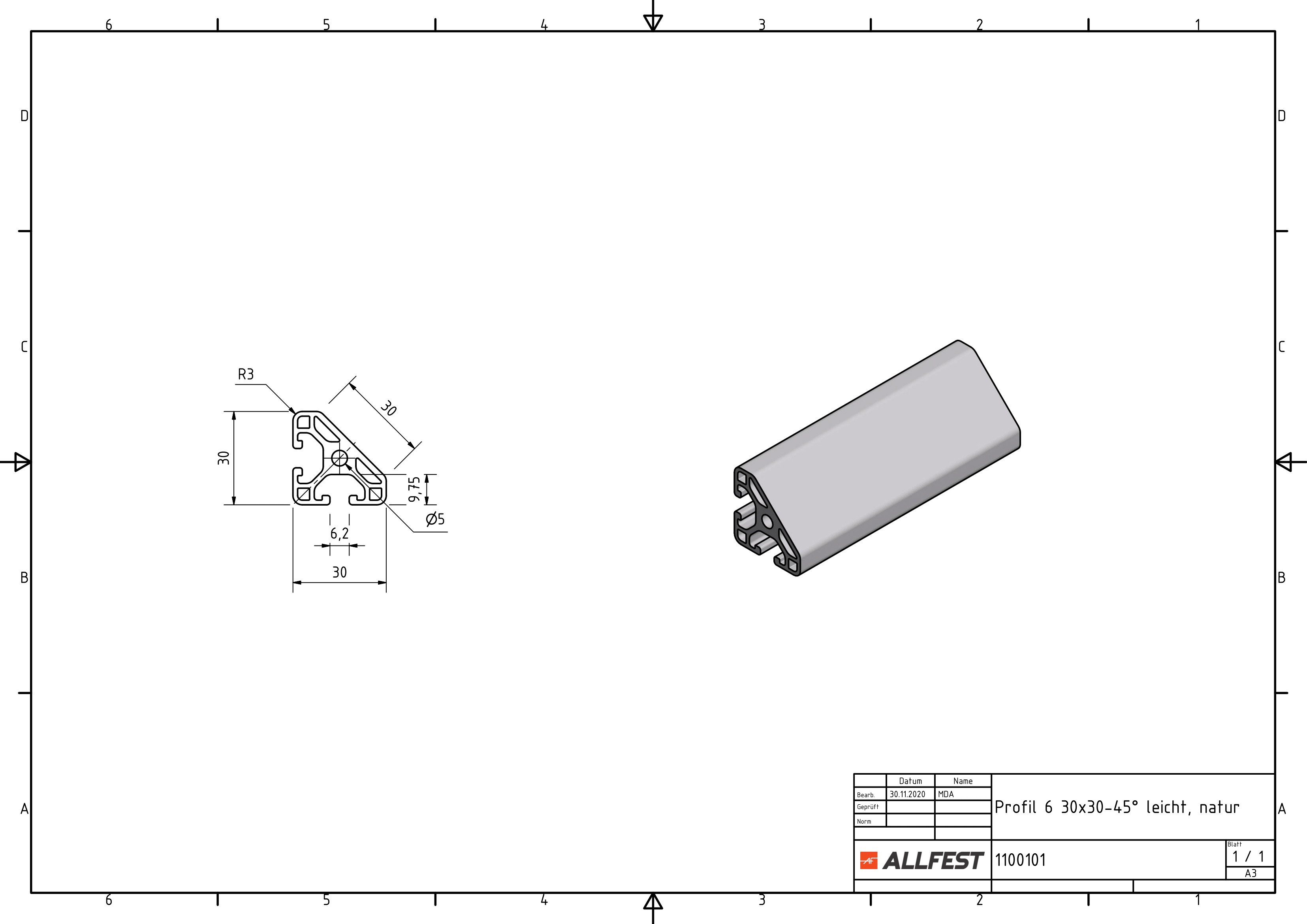 Profil 6 30x30-45° lekki, kolor naturalny - allfest.de