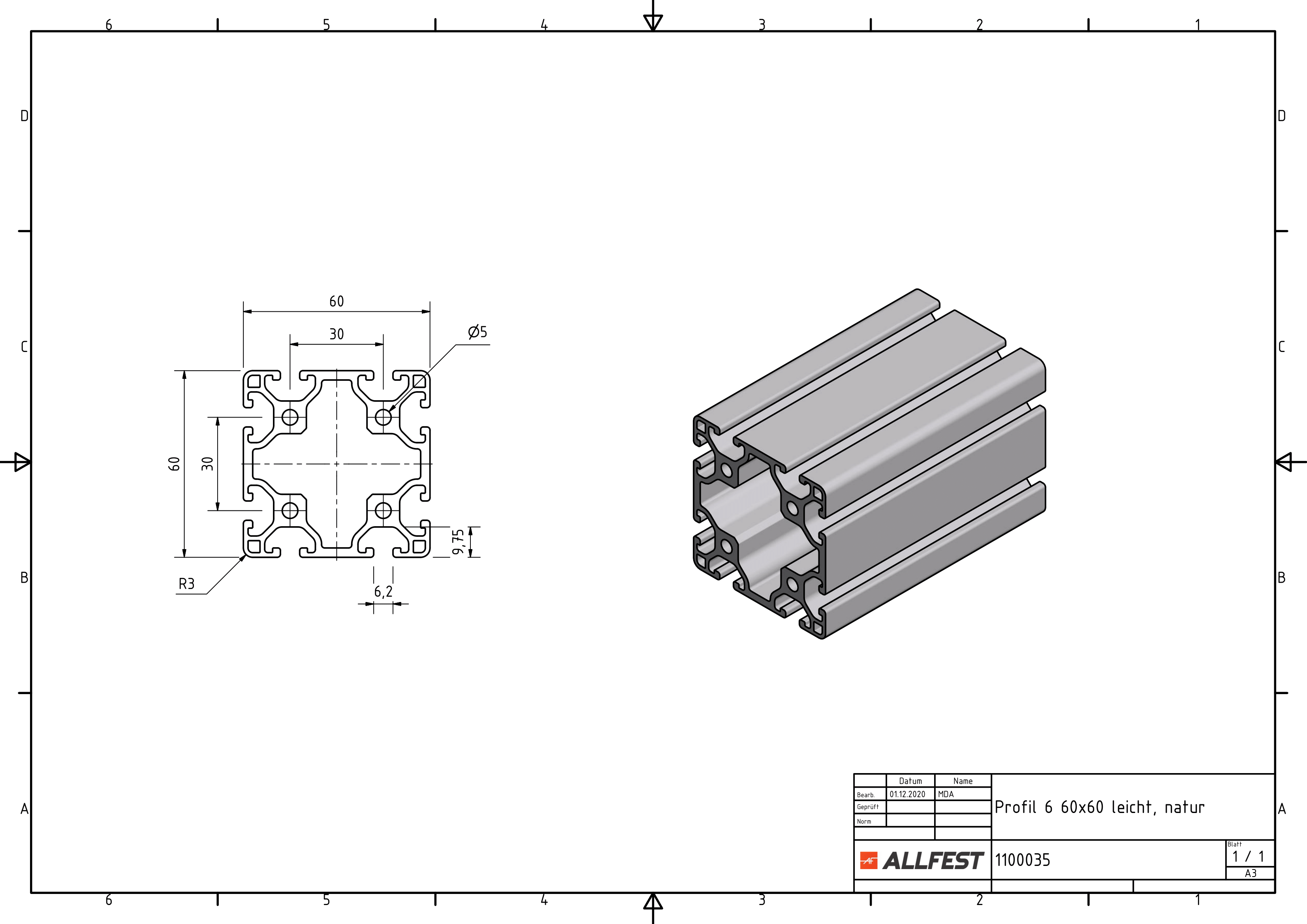 Profil 6 60x60 lekki, kolor naturalny - allfest.de
