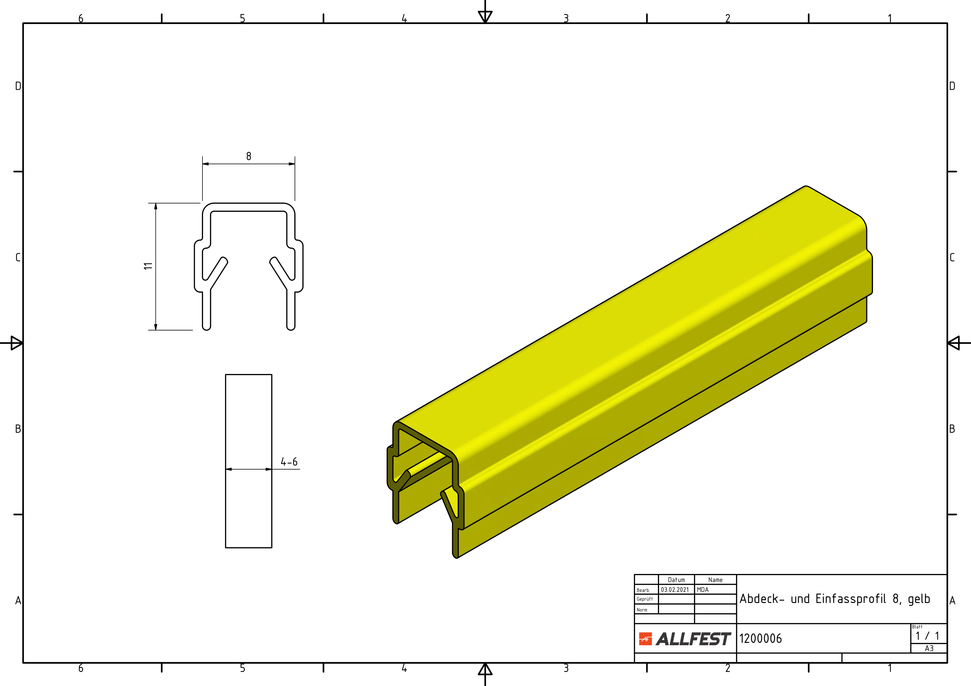 Profil maskująco-obejmujący 8, kolor żółty - allfest.de