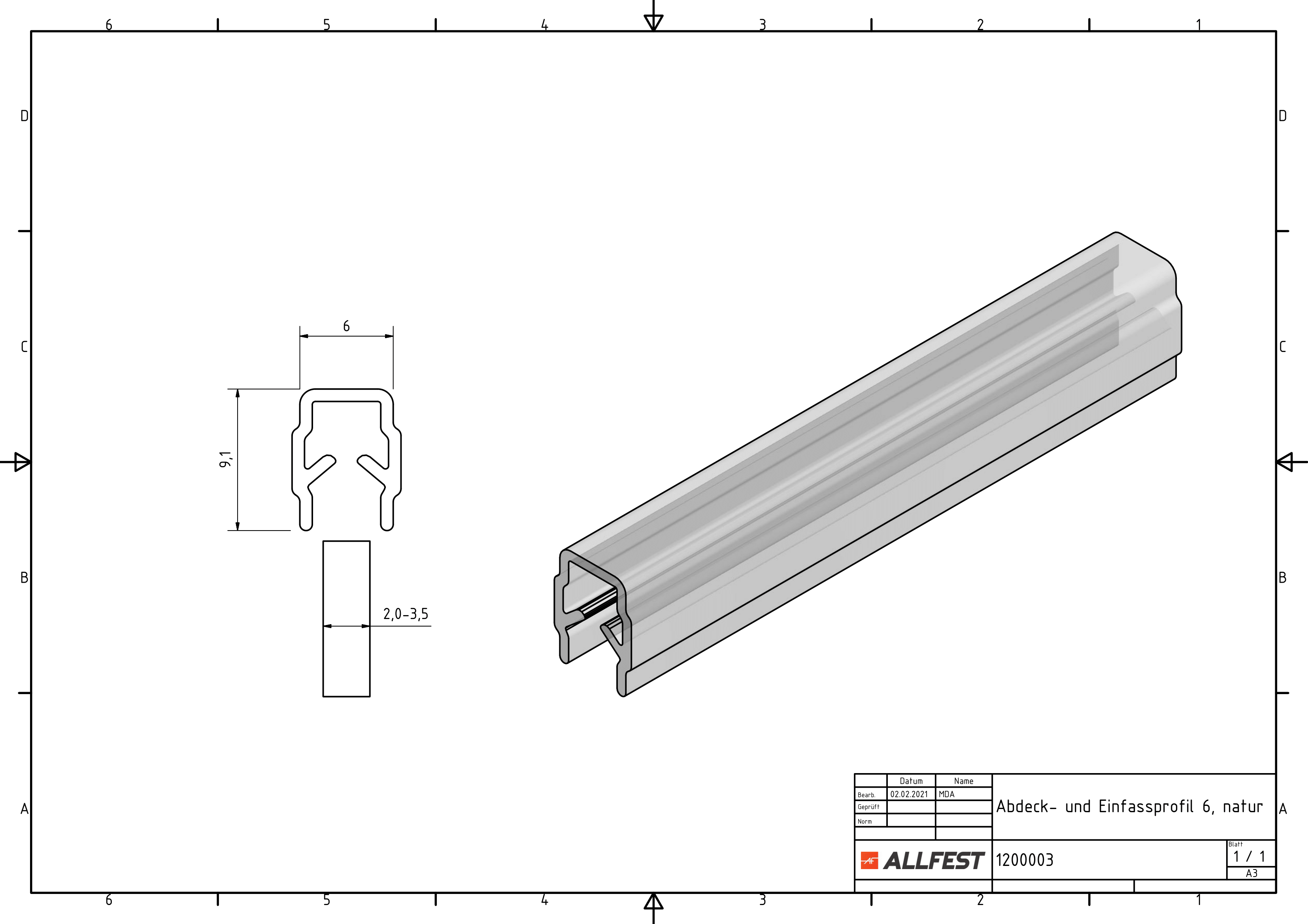 Als Einfassprofil, mit geöffneter Seitenach außen dient es für einen sicheren Halt der Flächenelemente.