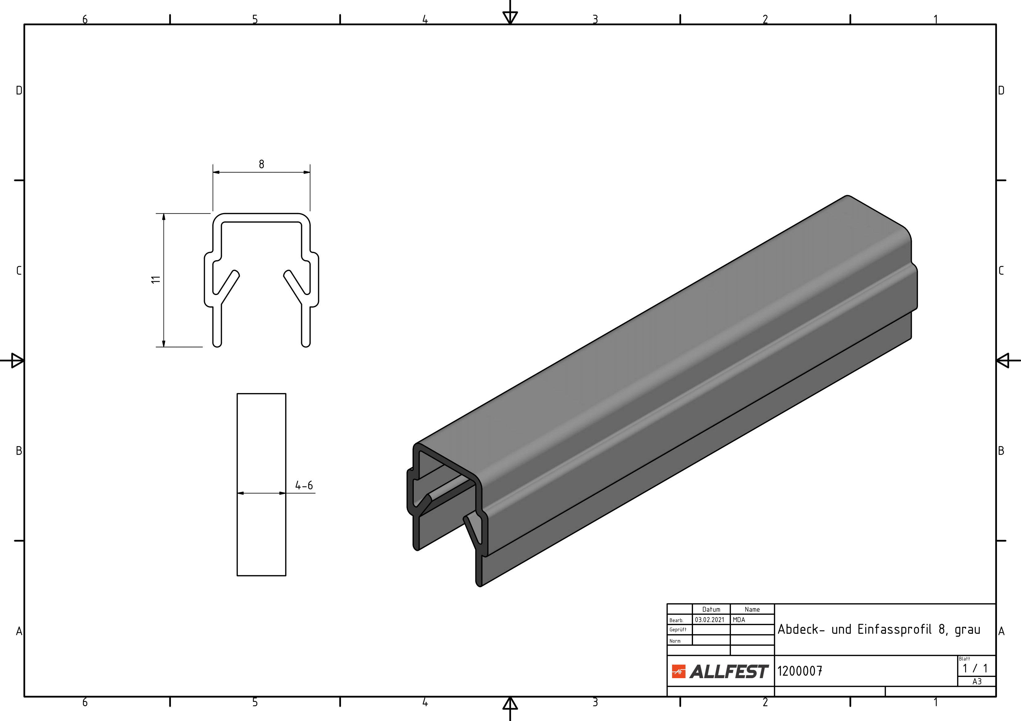 Abdeck- und Einfassprofil 8, grau - allfest.de