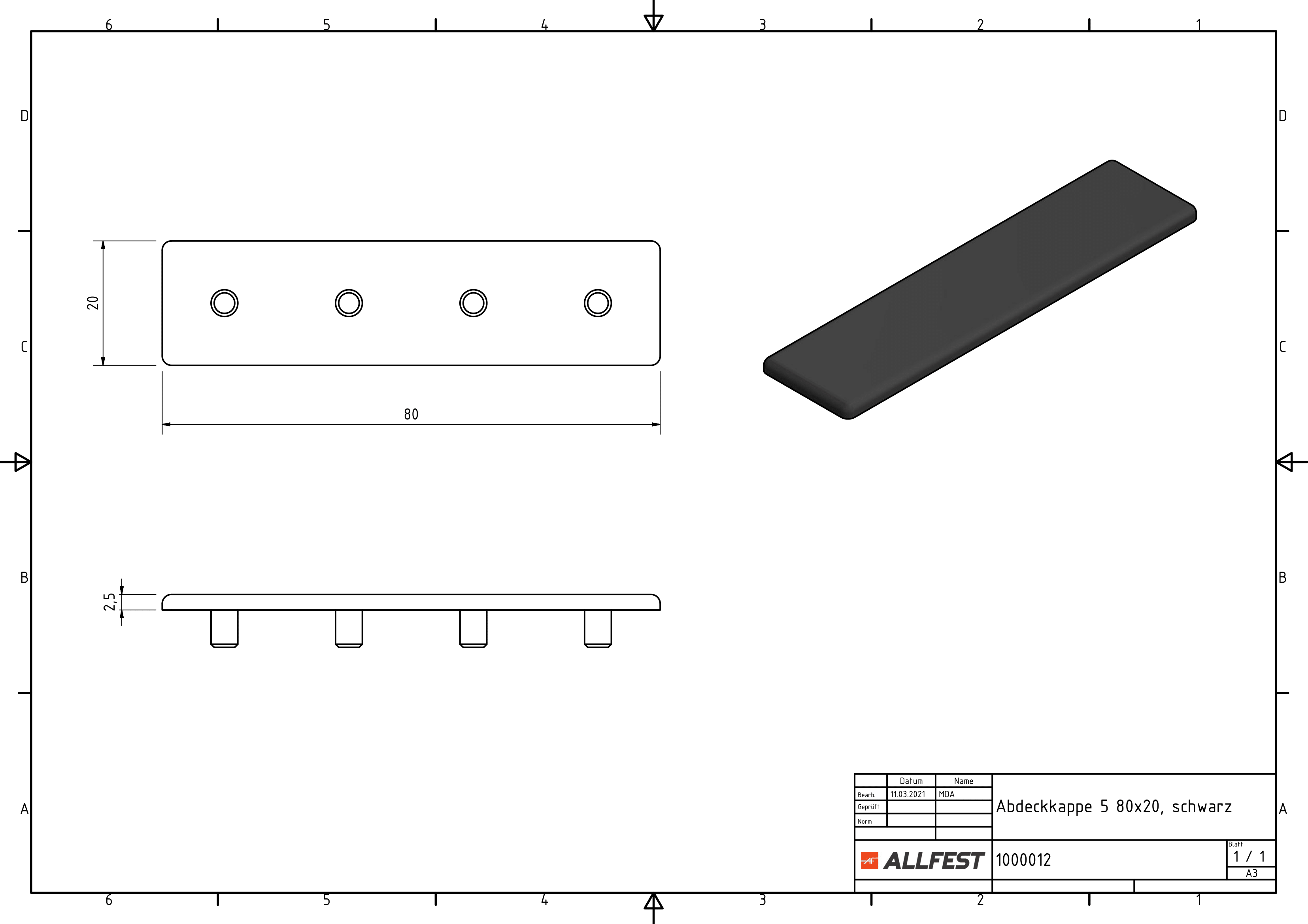 Abdeckkappe 5 80x20, schwarz - allfest.de