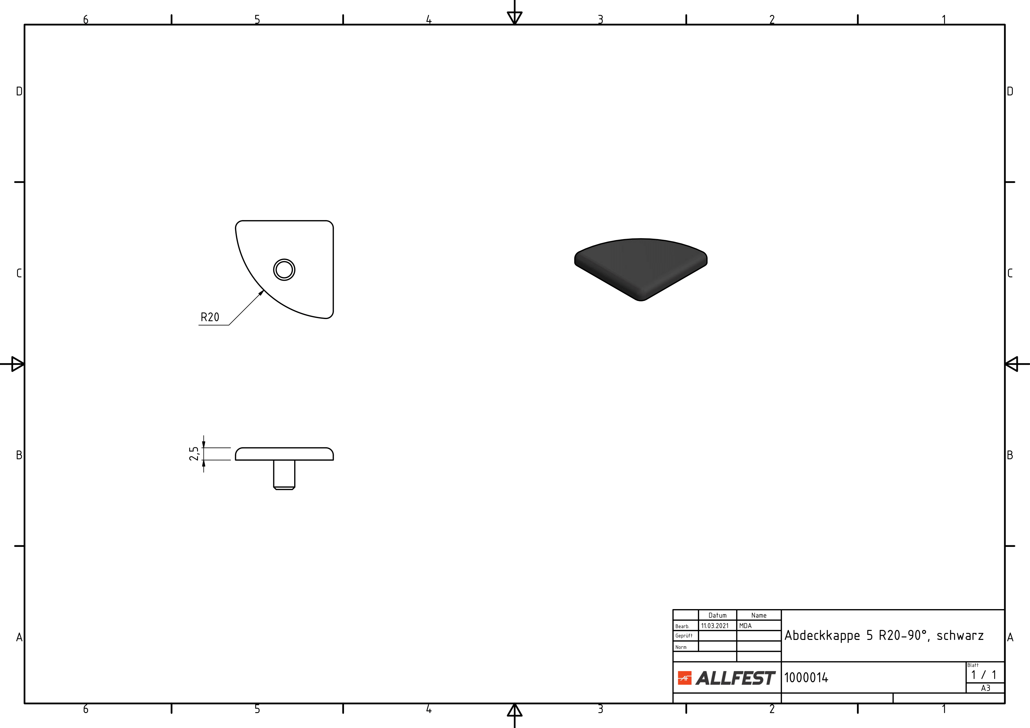 Abdeckkappe 5 R20-90°, schwarz
