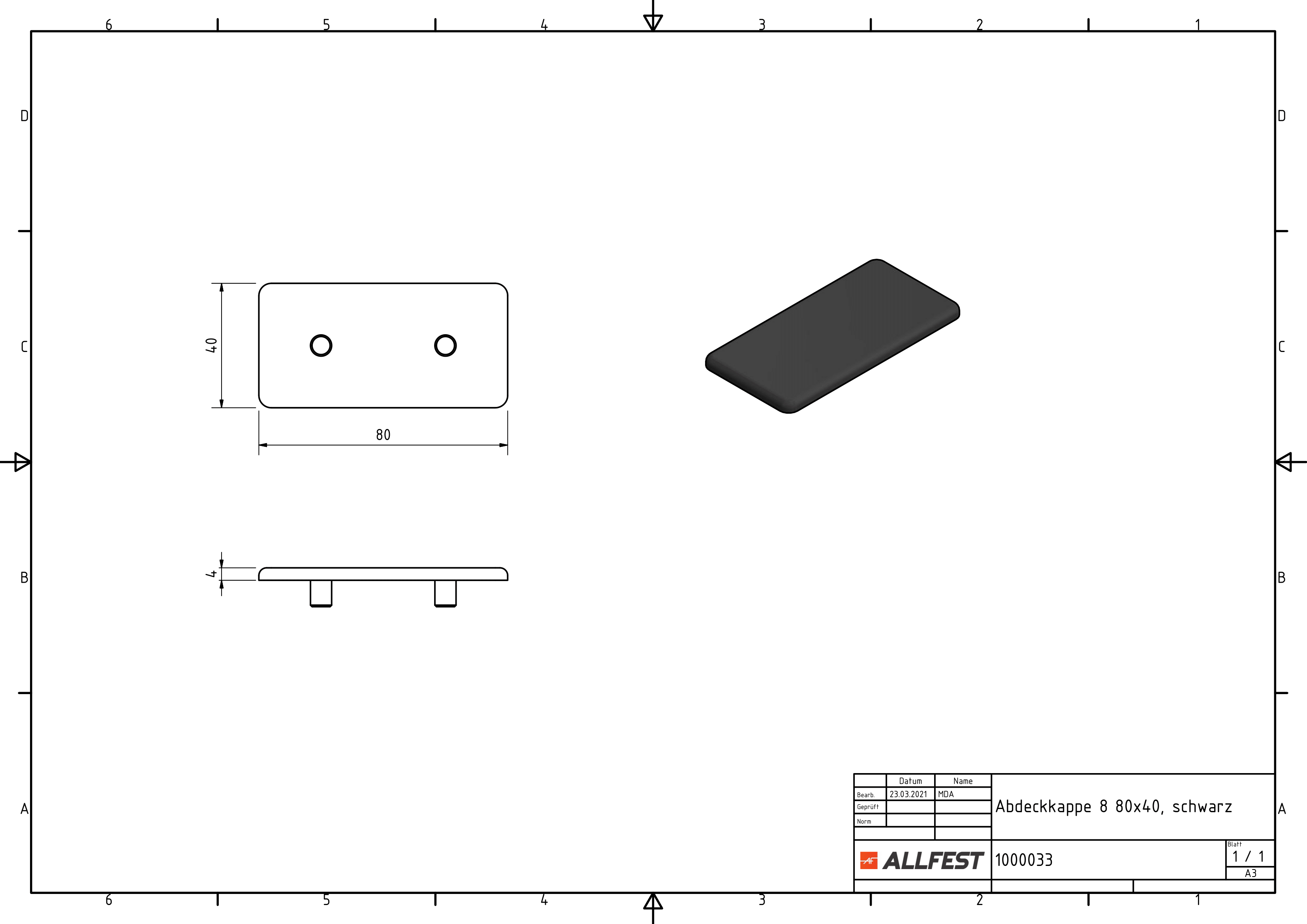 Abdeckkappe 8 80x40, schwarz - allfest.de