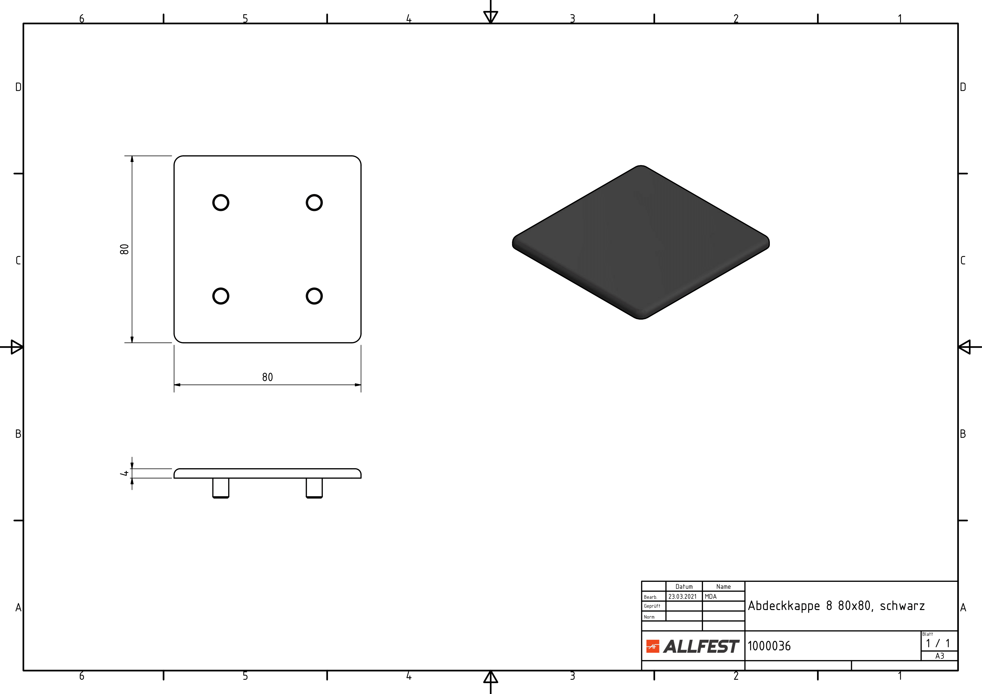 Abdeckkappe 8 80×80, schwarz