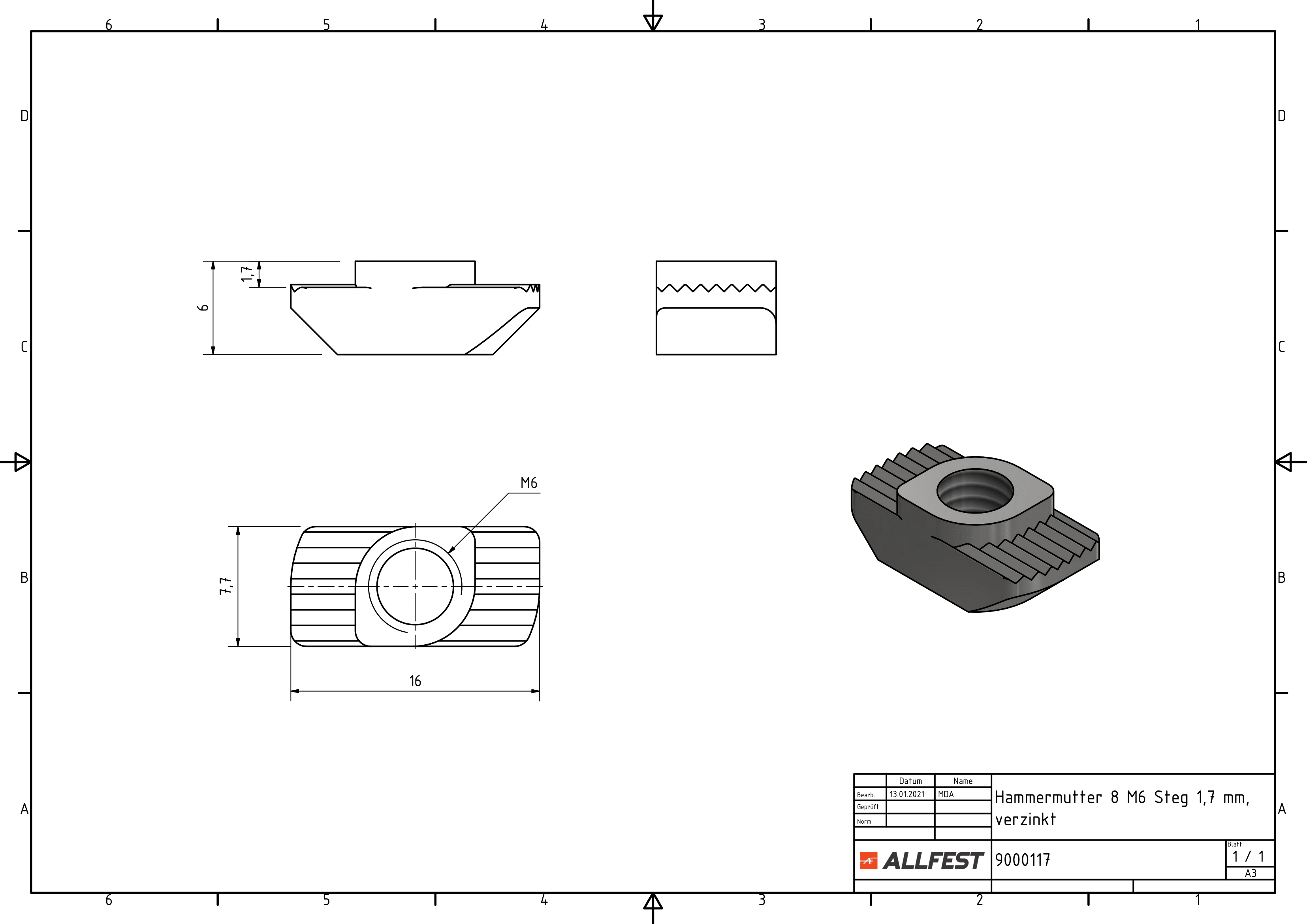 Hammermutter 8 M6 Steg 1,7 mm, verzinkt - allfest.de