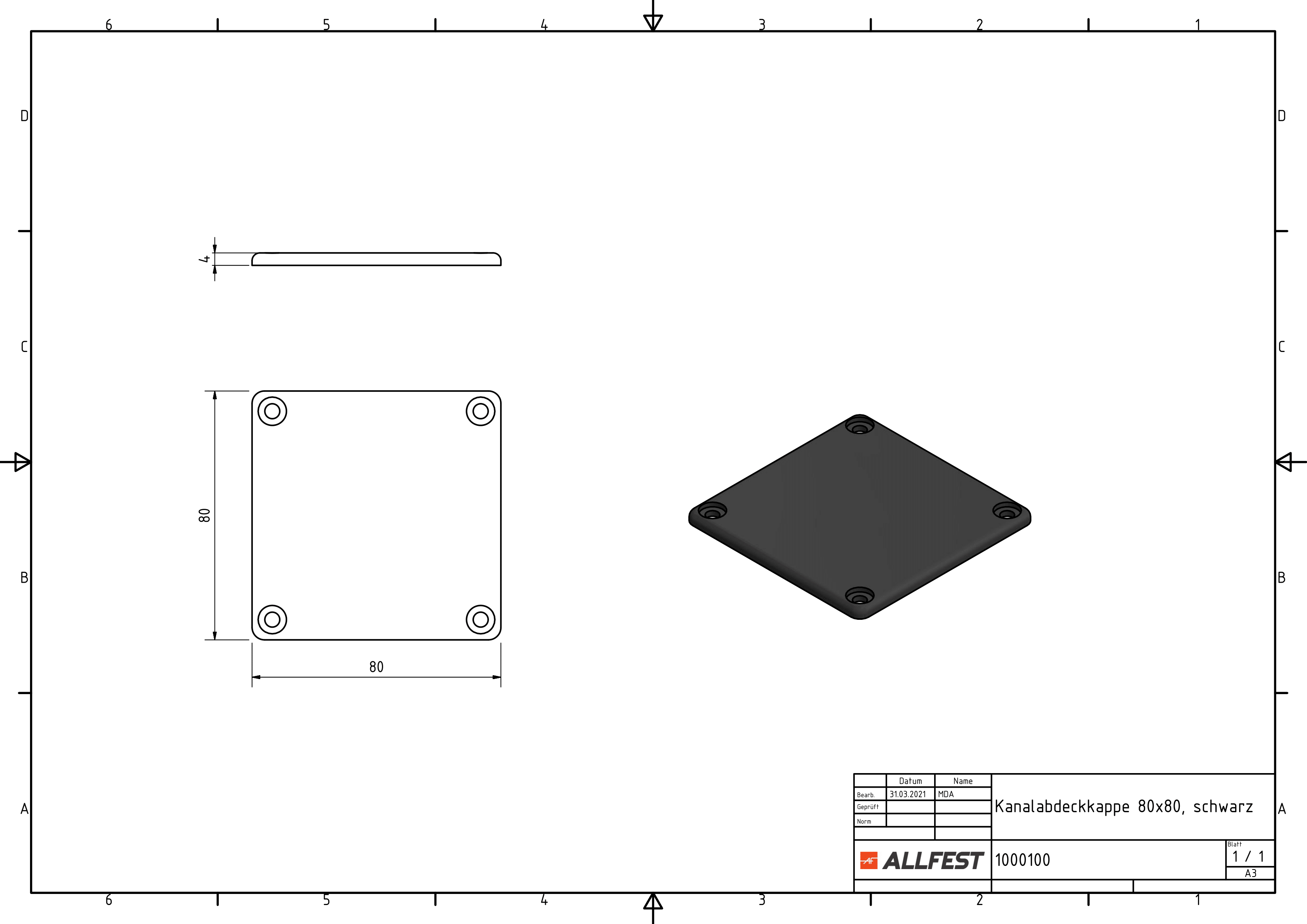 Kanalabdeckkappe 80x80, schwarz - allfest.de