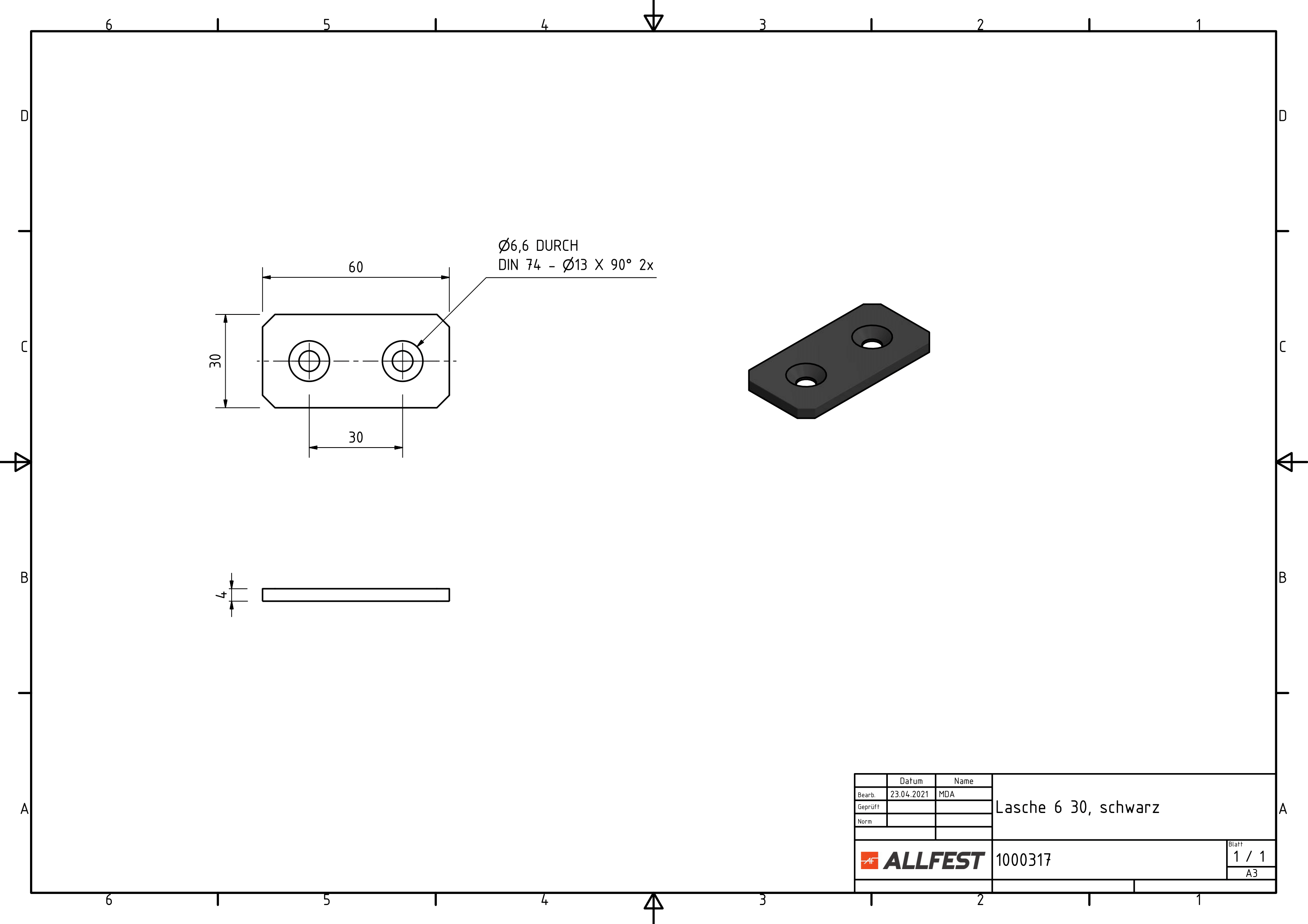 Lasche 6 30, schwarz