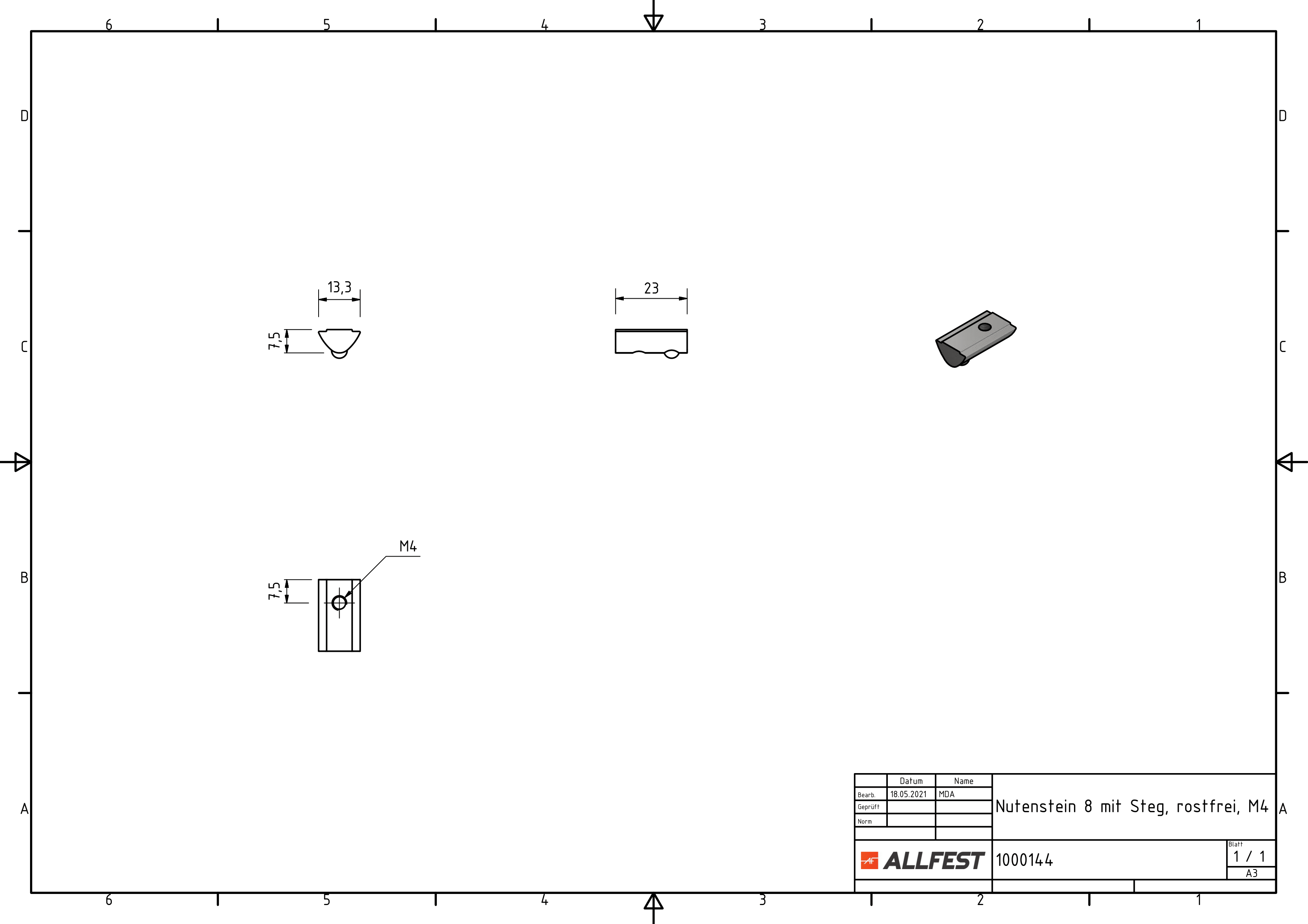 Universelles Befestigungselement für höhere mechanische Ansprüche, das an jeder beliebigen Stelle der Profilnuten einschwenk- und verschiebbar ist. Der Nutenstein ist mit einer selbstfixierenden, federnden Kugel ausgestattet. Rostfrei.