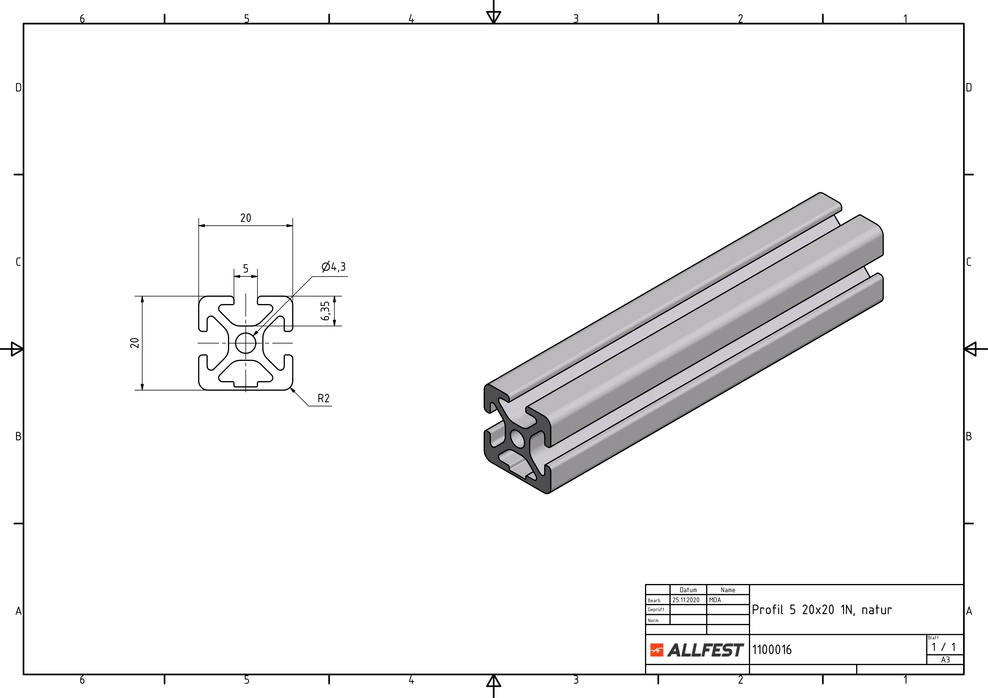 Profil 5 20×20 1N, natur