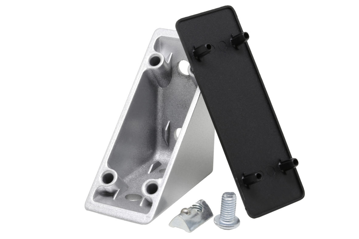 Geeignet zur Verstärkung von Profilverbindungen und Montage von Komponenten. Die kraftschlüssige Verbindung erfolgt durch Nutensteine. Lieferung komplett mit Nutensteinen, Schrauben und Abdeckkappe.