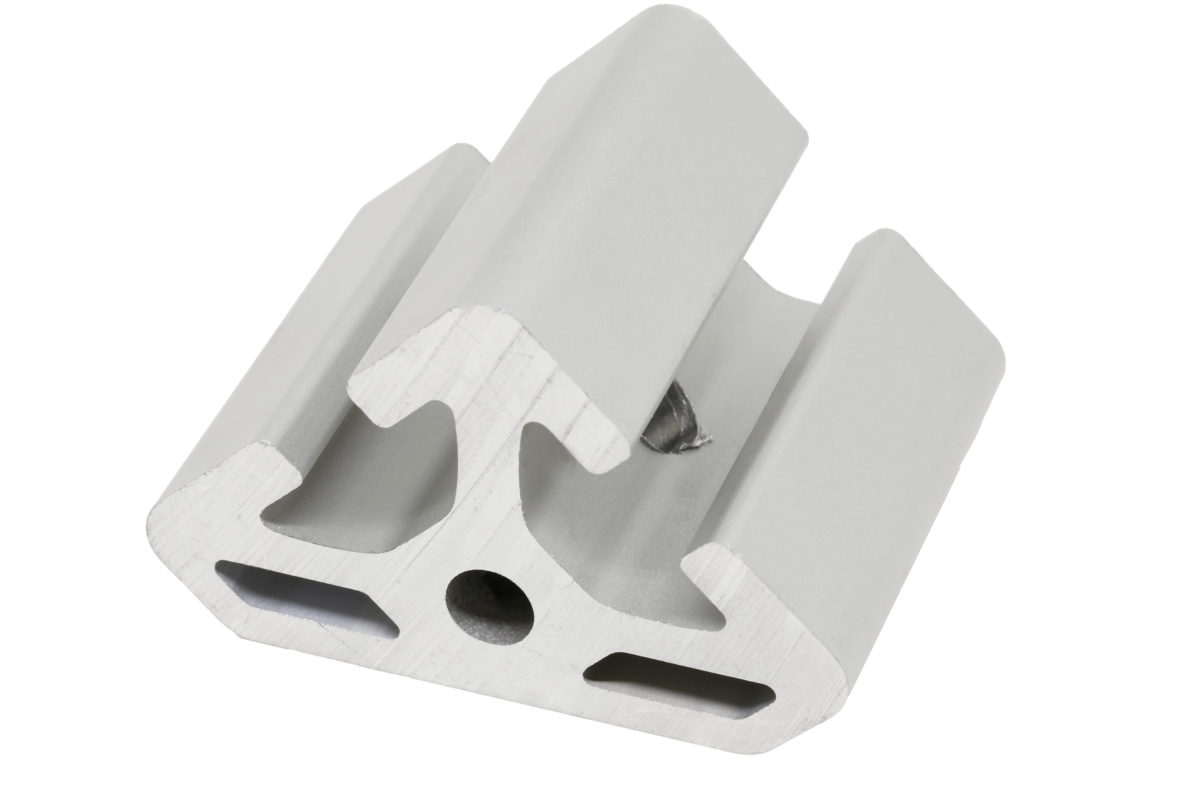 Verbindungselement für die Befestigung von einem Profil unter einem Winkel von 45°.